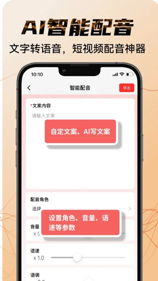 3. AI配音:提供多种配音风格,一键为你的文案配音,提升视频吸引力。