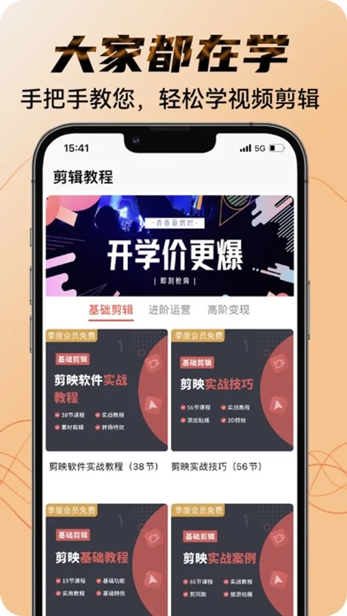从基础剪辑教程到流量变现、直播带货、引流推广等系列运营教程,覆盖各个阶段,助你快速成长。