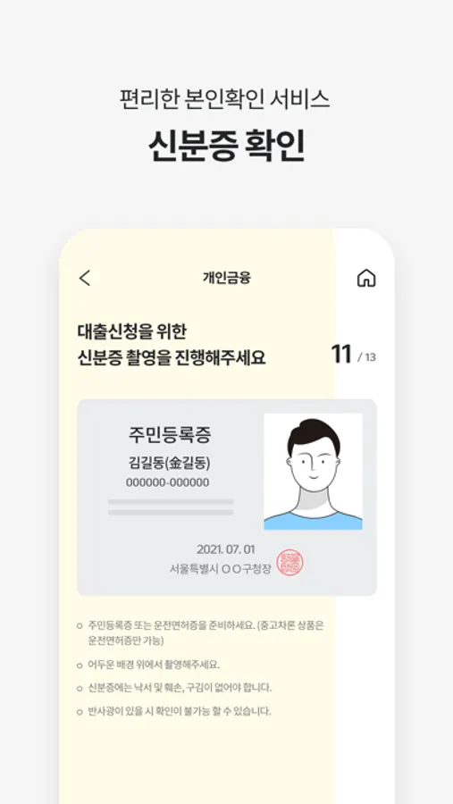 ● 카메라(선택) : 신분증 촬영