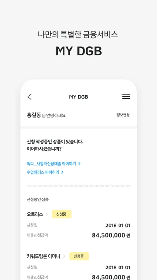 ● MY DGB : 신청/이용 내역 확인 및 정보 변경, 서류 발급을 빠르고 간편하게 처리