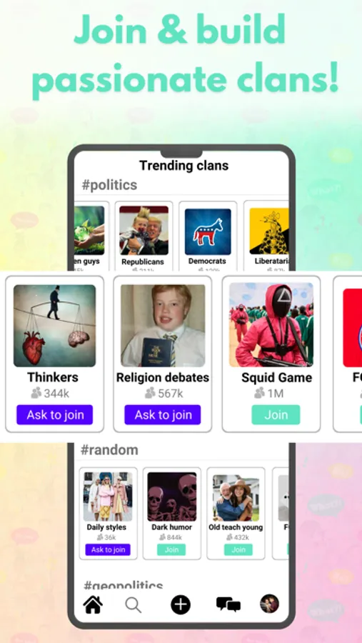 4)JOIN & BUILD PASSIONATE COMMUNITIES: Sports, politics, food, fashion, travel, cinema, LGBTQ+ art, interior design or love? You name it, we have clans on everything! Dizordat helps you discover new subjects, meet new people and make friends. Anyone can start a clan, public or private. You can decide to post specific questions and polls in specific clans!
