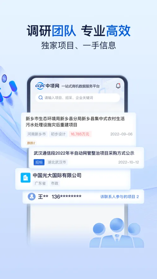 围绕用户关注项目提供关键节点进展、项目详情、采购需求、关键负责人等信息,按需进行项目深化调研。