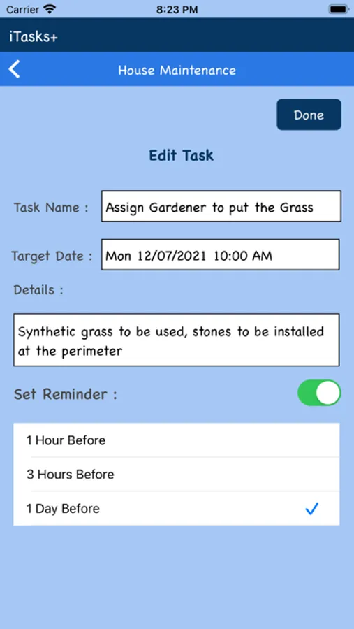 • May have a reminder alarm available to be set, if the User wish to use it, to make sure that an important task is not missed