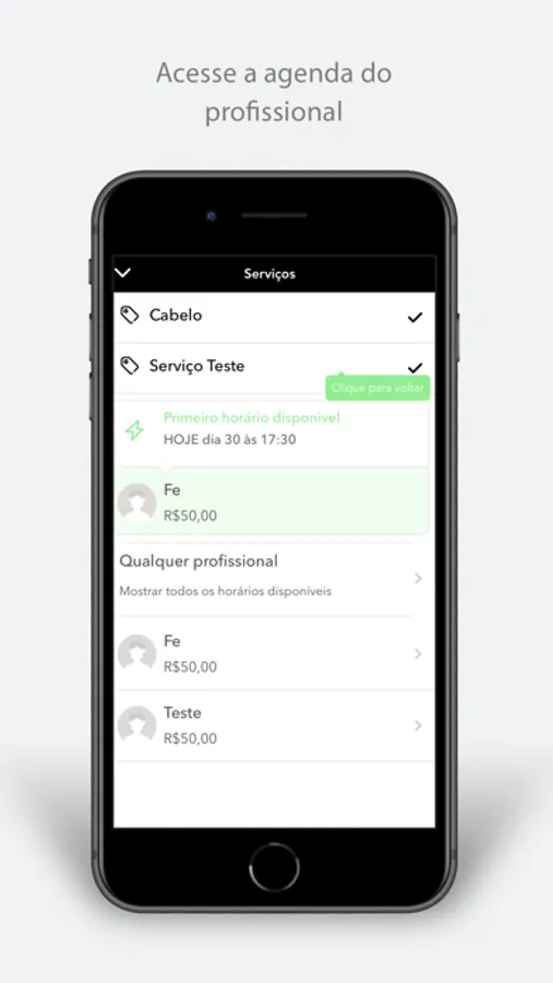 ► Marque horário com seu profissional favorito quando quiser, mesmo que você esteja no trabalho ou fora do horário comercial.