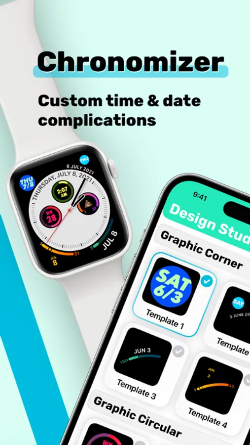 Chronomizer allows you to create date and time complications for your Apple Watch. Configure your own styles and let your personality shine on all your watch faces!