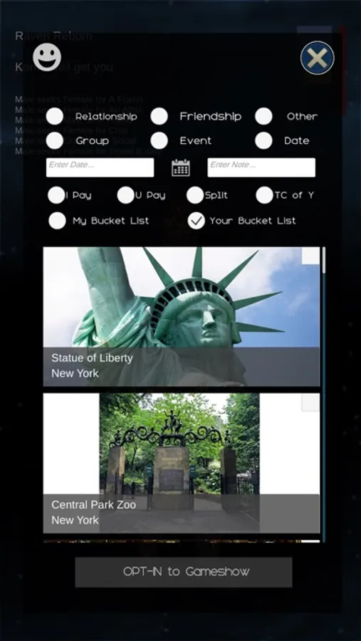 Karma the Game of Destiny, is a novel new social, friend making, dating, and going to venues and events GAME.