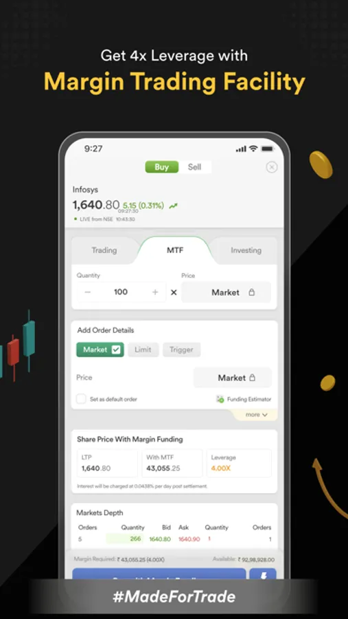 Get 5x leverage for 850+ stocks on our intraday trading platform