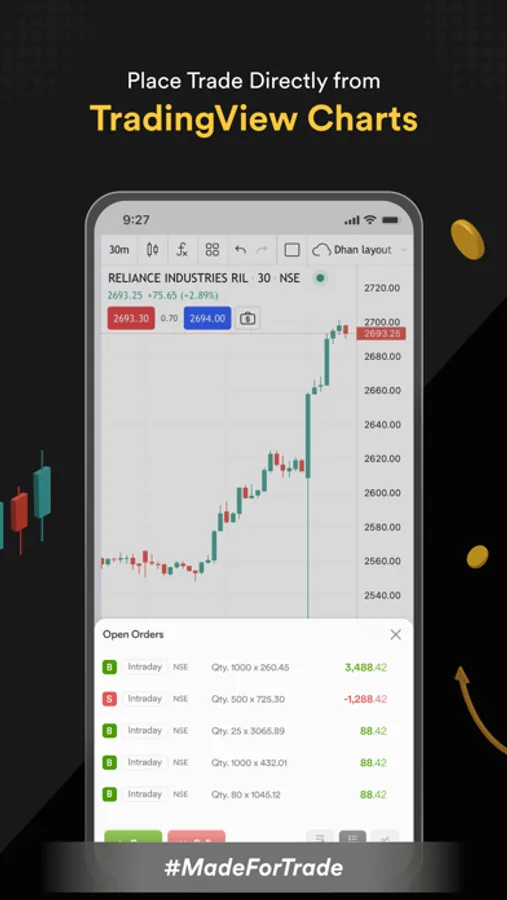 - For the first time in India - place orders directly from TradingView using Dhan