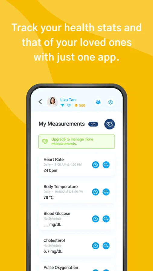 • Track measurements like weight, blood pressure for chronic conditions like hypertension, cancer, anxiety, depression, HIV, multiple sclerosis, MS, Crohn’s, lymphoma, myeloma, and leukemia.