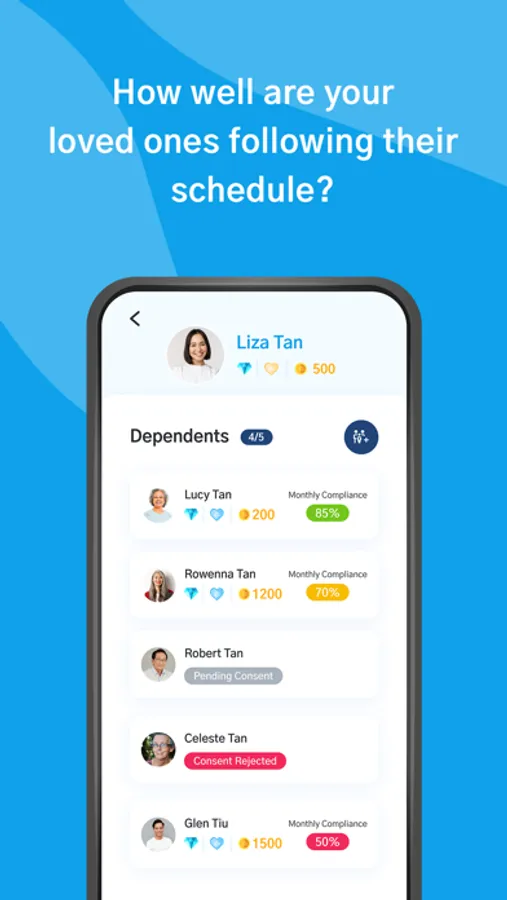 Using CareAide is FREE. Upgrade to Premium to care for up to 5 dependents, add unlimited friends, earn CareCoins; redeem them for gift cards, share them with family and friends.