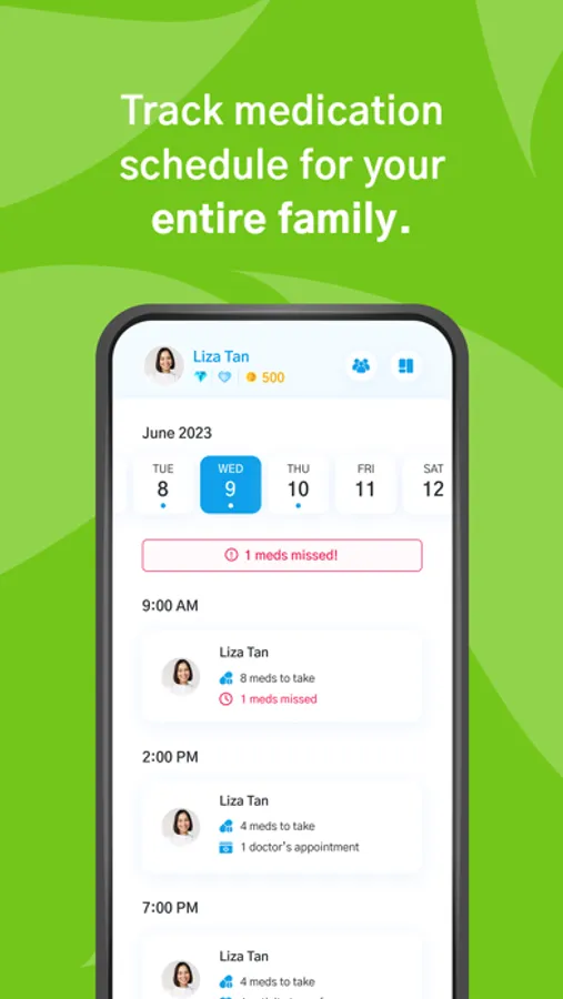• Add dependents to manage their medication and friends for a reminder when you miss a dose.