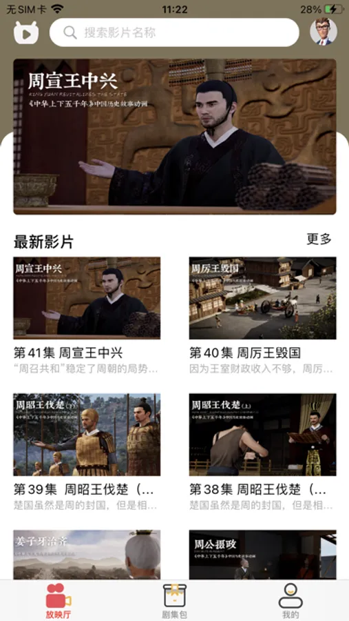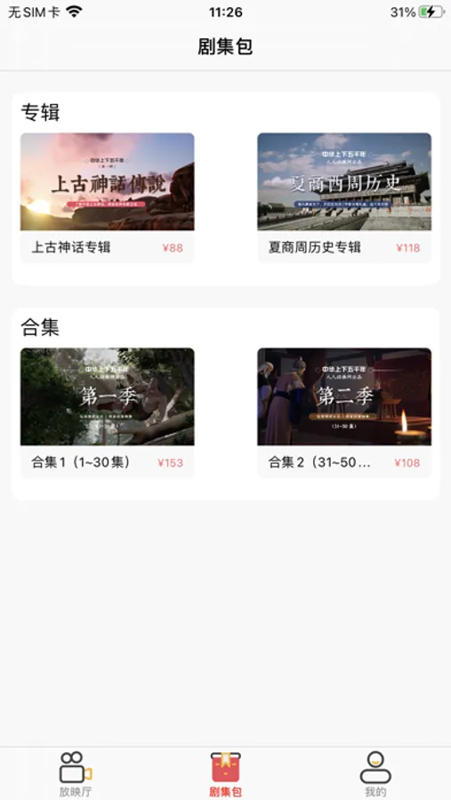 当前版本主要提供“放映厅”剧集——《中华上下五千年》移动端的购买和观看服务。
