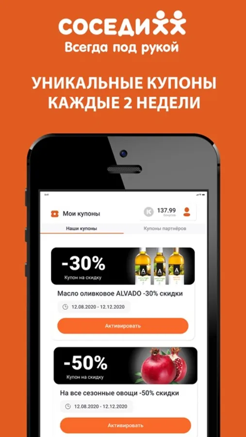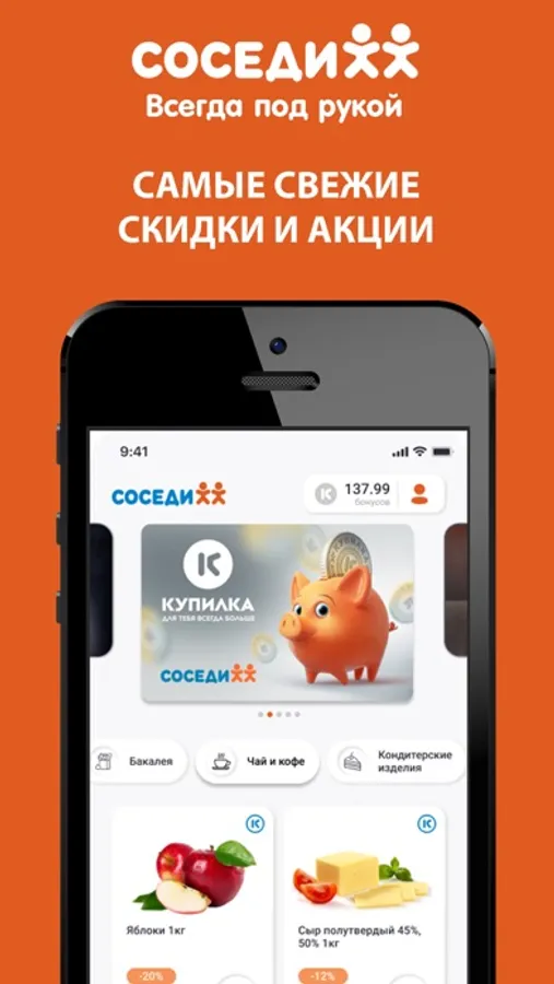 Теперь ходить в любимый магазин еще удобнее. В новом приложении “Соседи” можно зарегистрировать виртуальную Купилку, получать персональные купоны, смотреть историю покупок, следить на акциями и отмечать любимые товары, участвовать в рекламных играх. Твои «Соседи» всегда под рукой, скачай прямо сейчас!
