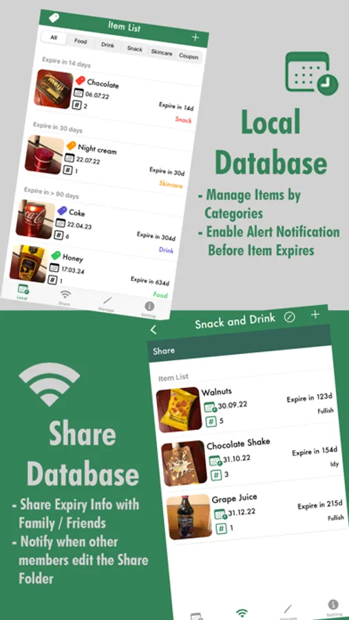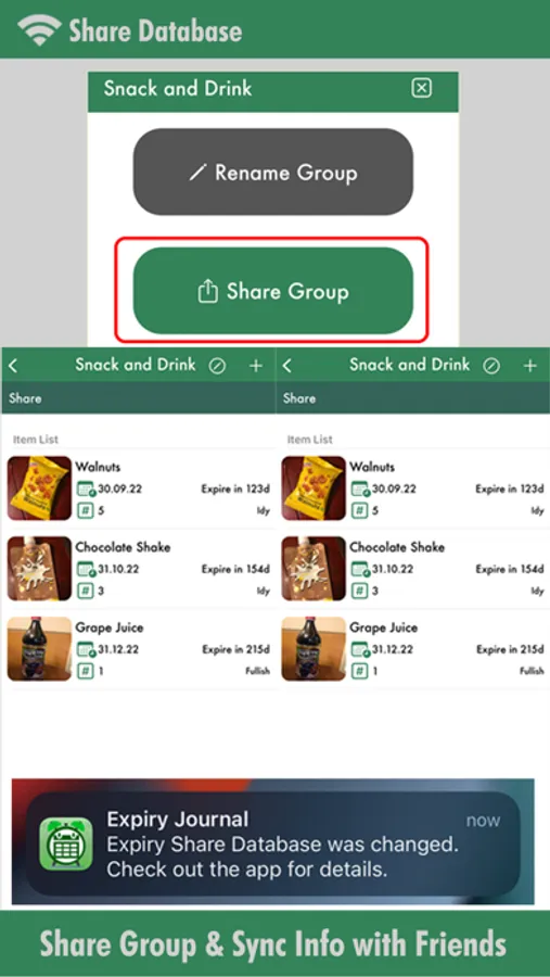 Share Database - Share list of items, sync expiry information and co-manage the items with friends and families.