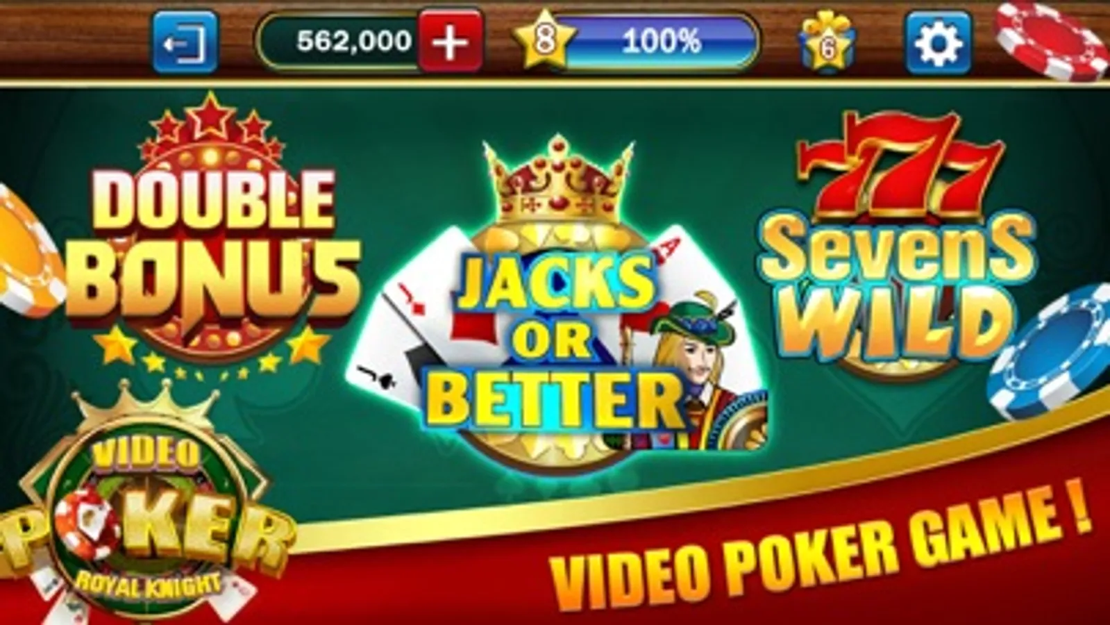 Video Poker Classic features your favorite video poker games with real card shuffling, casino paytables, real dealing, and the full Las Vegas experience.