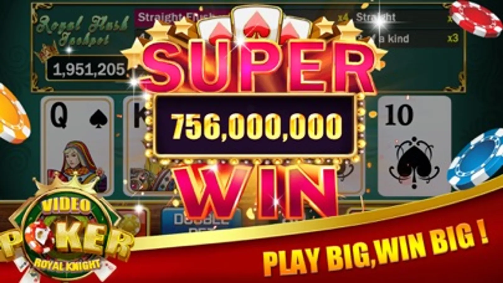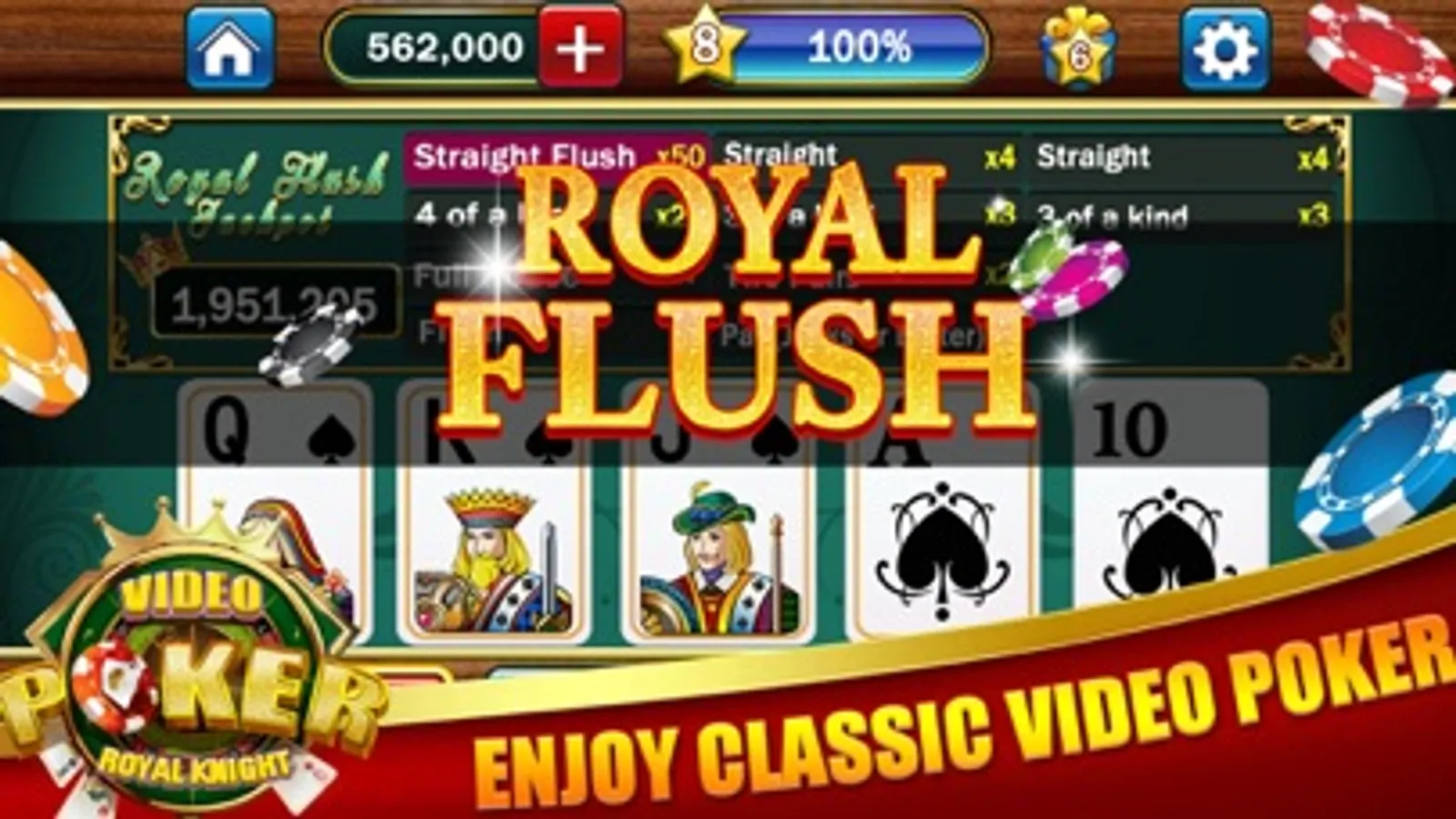 * Royal Flush mega jackpots – play to WIN BIG