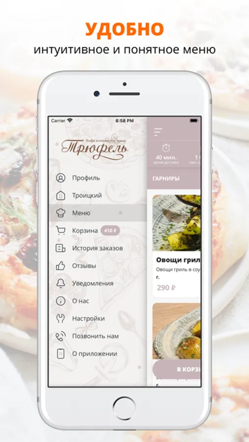 Приложение Трюфель | Губкин — это удобный способ заказа еды домой или в офис! Мы готовим наши блюда из качественных свежих ингредиентов и доставляем еду по городу Губкин быстро и бережно.