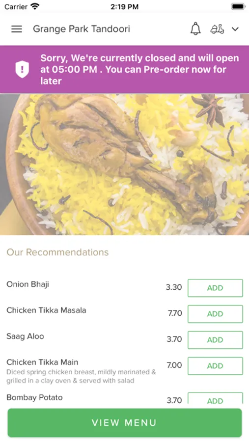 Thank you for visiting Grange Park Tandoori in ENFIELD. We hope you enjoy our online ordering app and your food.