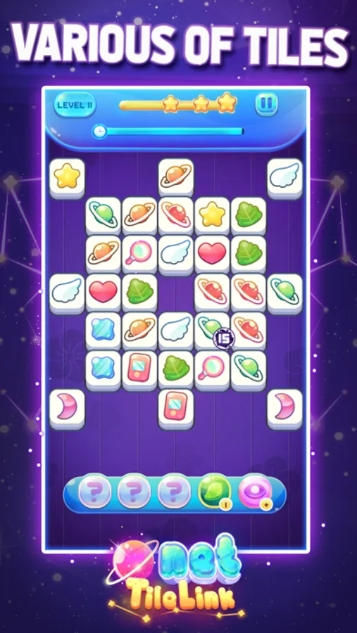 Plan your strategy by connect 2 same tiles, using boosters smartly to overcome the difficulty enhanced levels! Remove tiles and collect gems across hundred of levels, ensure you will continue to play more and more!