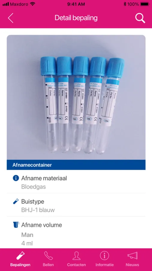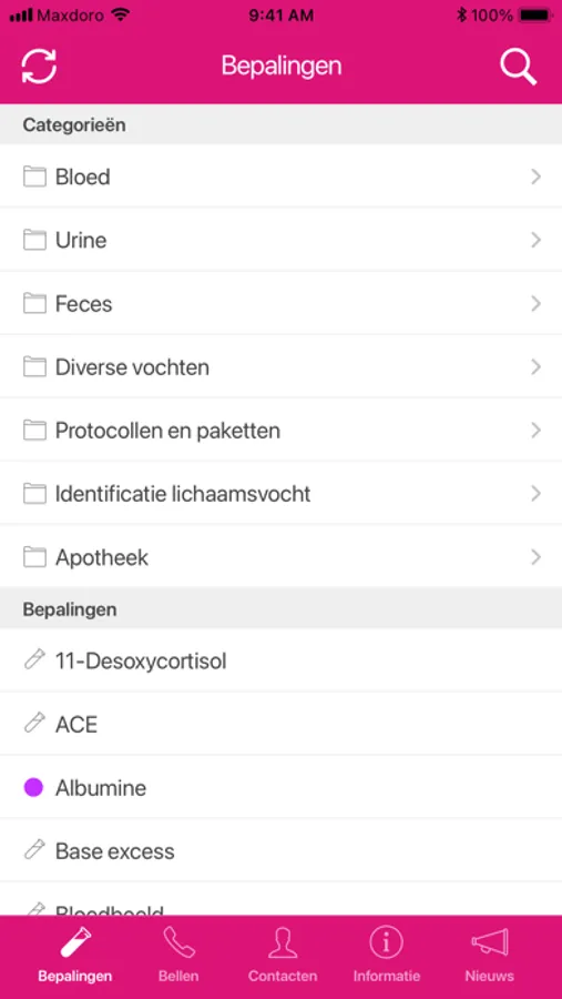 • Up-to-date referentiewaarden: Wanneer de app beschikt over een internetverbinding zal deze contact maken met een beheersysteem om de laatste referentiewaarden op te halen. Deze zijn via diverse categorieën eenvoudig bereikbaar. Een detailpagina kan tevens een afbeelding of een link naar bijvoorbeeld een PDF bestand bevatten.