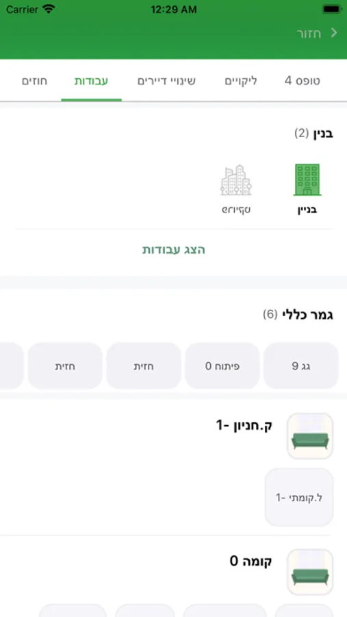 ריכוז סטטוס העבודות בפרויקט במבט לפי חלל.