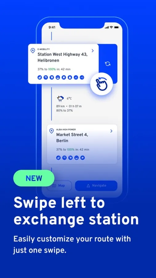 Swipe to exchange - Exchange charging stops on your calculated route by swiping them to the left on the list view