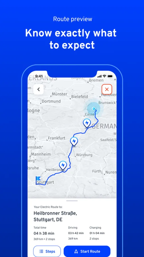 Navigation for electric vehicles has never been easier. ElectricRoutes is your personal assistant and gets you safely to your destination.