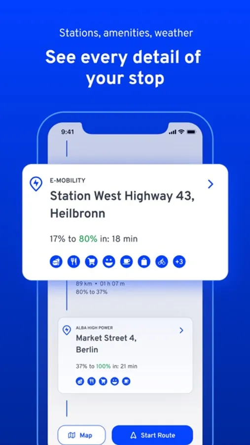 Route Planning: Plan the optimal route for your electric car, matched to your vehicle and your charging cards.