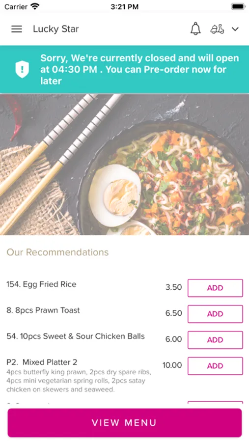 Thank you for visiting Lucky Star. We hope you enjoy ordering on our online app, as well as your food - we hope to see you soon!
