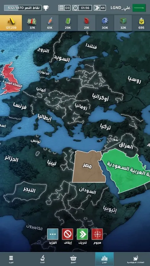افرض سيطرتك على أعظم الأمم في العالم وتصدى لتهديدات الحرب العالمية الثالثة التي تلوح في الأفق. انهب الموارد وتحكم بها واعقد تحالفات ضخمة لتعزيز اقتصادك وإضعاف أعدائك بشتى السبل. قم بتجهيز أسلحة الدمار الشامل لتكون القوة العظمى المسيطرة.