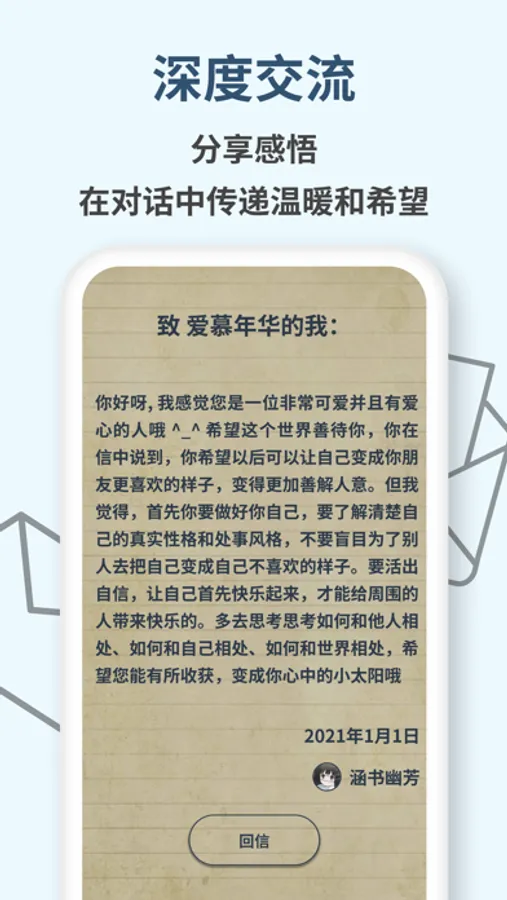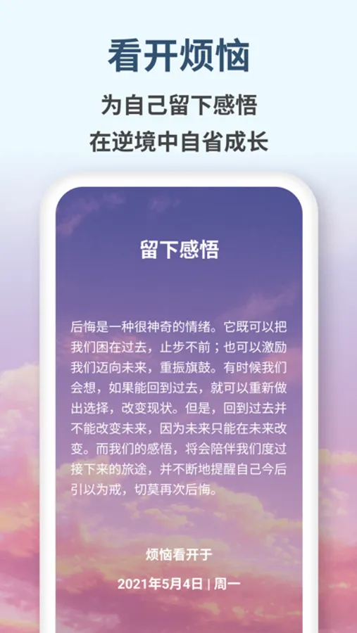 我们希望大家在看开烦恼缓解忧愁的同时,也可以从别人的建议中收获感悟,给未来的自己留下警示,并把这份自省的力量传递下去,让更多人收获希望。