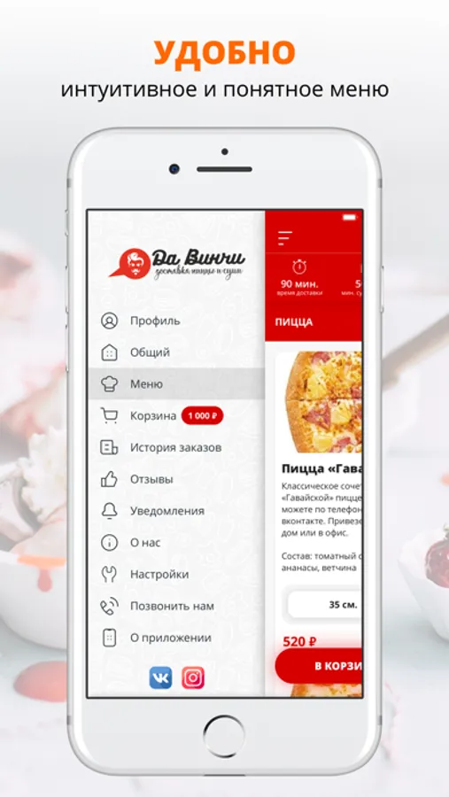 Приложение Да Винчи — это удобный способ заказа еды домой или в офис! Мы готовим наши блюда из качественных свежих ингредиентов и доставляем еду по городу Самара быстро и бережно.