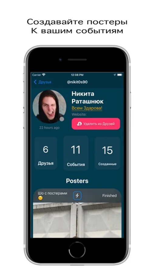 - К каждому событию создается постер и друзья могут находить ивенты через ленту (на домашней странице)