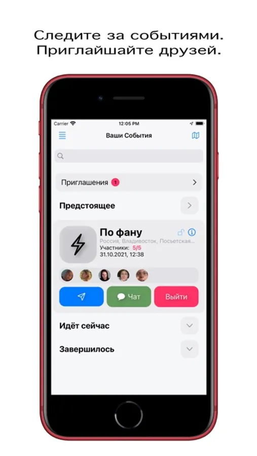 - У каждого события есть чат, в котором участники могут обсуждать детали. Когда ивент закончится, чат тоже исчезнет.