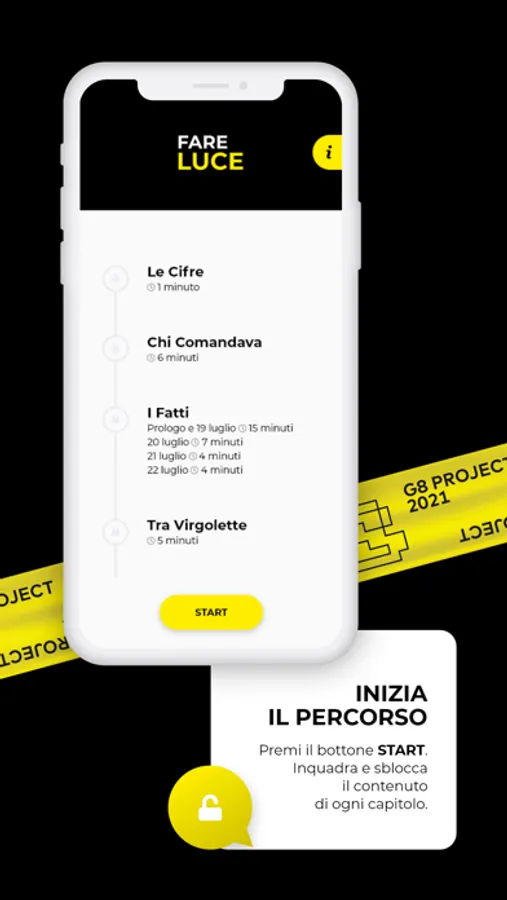 Presentata a Genova al Teatro Ivo Chiesa dal 19 al 22 luglio, esattamente nei giorni del ventennale del G8 di Genova, l’installazione consisteva in un enorme cubo bianco al cui interno gli spettatori trovavano dieci marker da inquadrare con il proprio cellulare per avere accesso a una serie di contenuti testuali. Date, elenchi, cifre, sentenze, notizie “nude e crude”, una sintesi senza precedenti elaborata con l’obiettivo di fornire allo spettatore una cronaca pura - scevra da giudizi e interpretazioni - dei fatti avvenuti a Genova nel 2001. Un invito a riflettere a venti anni di distanza su quanto accaduto ed elaborare una memoria condivisa.