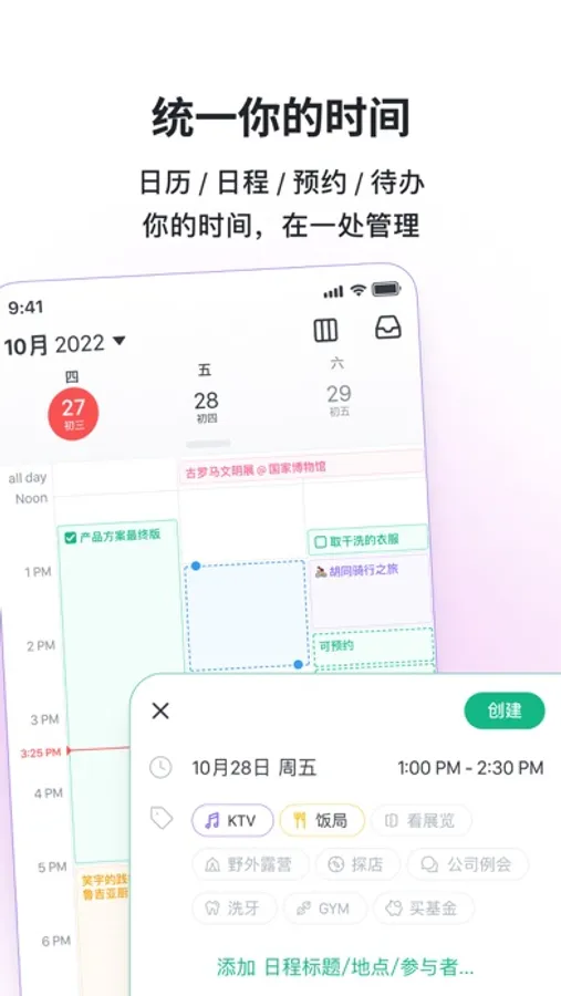 - 统一你的时间:日历/日程/预约/待办,在一处管理你的所有时间,不再顾此失彼