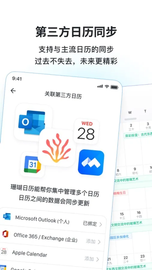 - 第三方日历同步:Apple, Google, Outlook… 珊瑚日历支持同步多种第三方日历,顺滑又安全