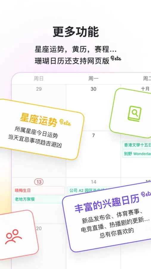 珊瑚日历由 Polytime 进化而来,全新的 icon 和设计,更好的功能和体验!