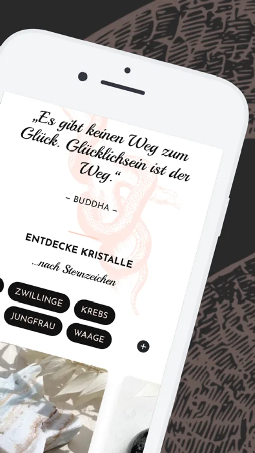 Über 80 Steinprofile bringen dir die faszinierende Welt der Mineralien näher. Intelligente Filter erlauben dir die Suche nach dem passenden Stein für dich - nach Sternzeichen, Chakra oder dem Thema, das dich gerade beschäftigt.