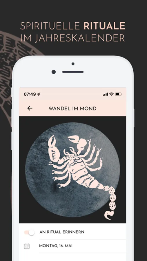 Der Kalender zeigt dir Mondphasen und Tierkreiszeichen sowie spirituell bedeutsame Tage an. Unsere Ritualtipps begleiten dich durch das ganze Jahr und bereichern deine Praxis.