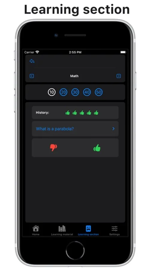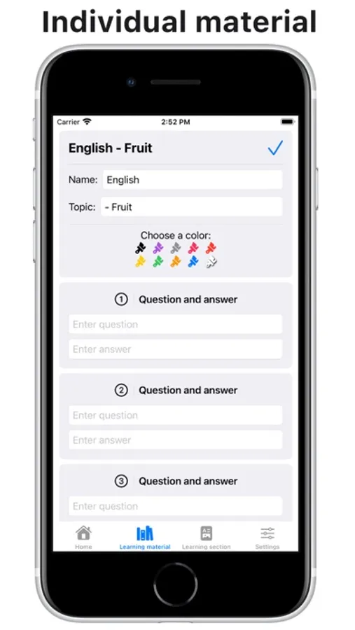 In the app, up to 50 questions can be added per learning box. A total of 10 learning boxes are available to you.