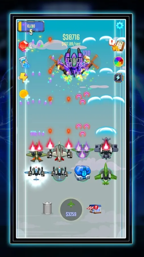 Get ready for real breathtaking action while playing awesome new clicker Jet Fighter Defender. Build and rule your own empire by buying, and managing your own squadron. Invest in the best jets and become a tycoon in this awesome new clicker! Click on the jet idle tycoon to merge them and get a new powerful merging fighter jet. Take control of every merging plane. Merge & Defeat the enemies to protect your aircraft! Need some real challenge? Unleash the might of your planes’ power on enemy jets and light up the skies with blazing explosions. Looking for a fun Game? A time killing game? An attractive Plane game? An idle tycoon game with a beautiful design? A free game? An offline game? You got it right! Merge kinds of jet fighters to get a higher-level jet. Fly far and far. Merge the same jets together into better-advanced ones.