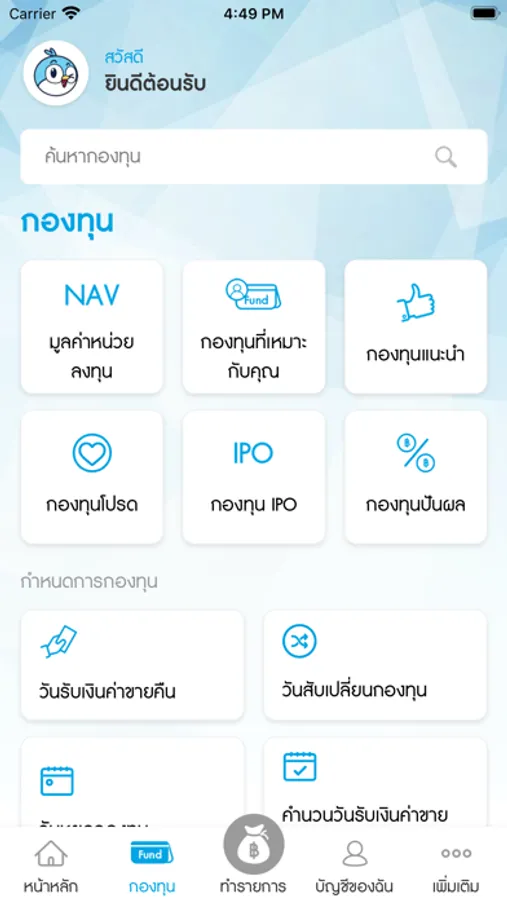 - ทำรายการ ซื้อ ขาย สับเปลี่ยนหน่วยลงทุน วางแผนการลงทุนอัตโนมัติ