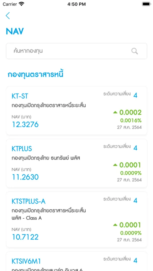 - ค้นหากองทุน แสดงข้อมูลกองทุน ราคา NAV บันทึกกองทุนที่ชื่นชอบ
