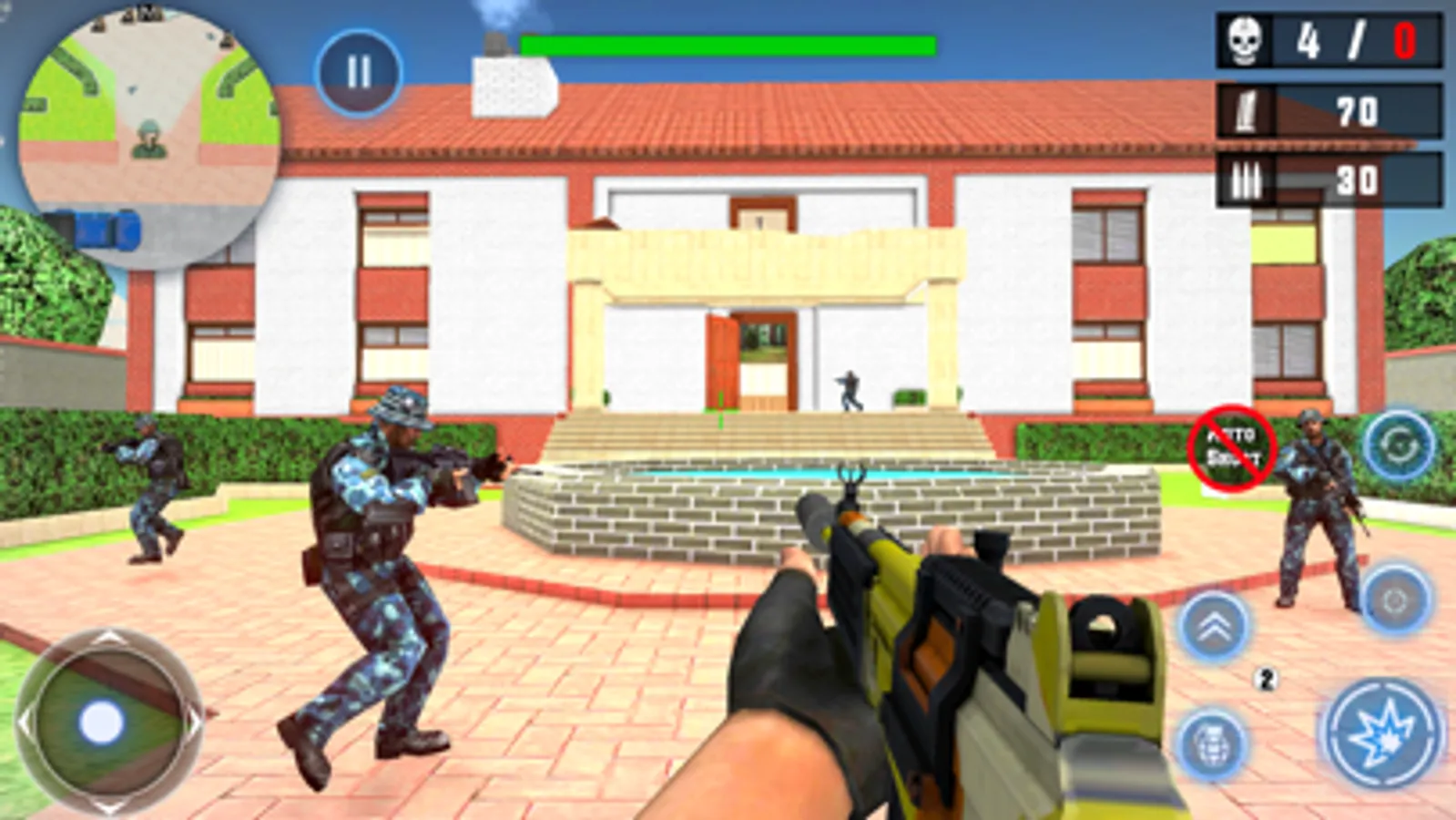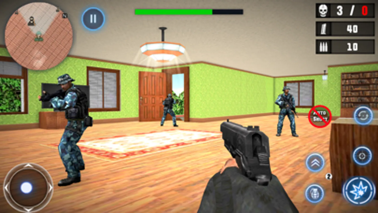 Here your assault shooter mission is in a house where terrorists have sneaked and kidnaped an innocent family. Land into the house as a free firing Squad shooter along with a free firing squad for critical strike army operations against enemies. Innocent family may lose their lives due to mistakes of the squad. Be careful during the fps commando mission game. Rescue hostages from terrorist unknown shooters with your pro skills of fire shooting games.