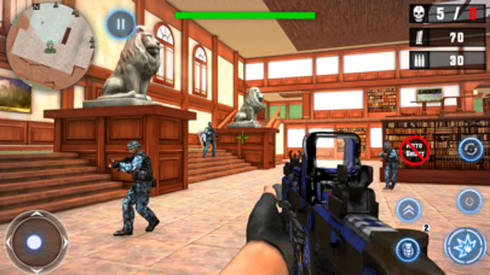 In this environment of the best fps shooting games, terrorist groups entered a library, students are afraid of them. You are the best fps shooter who has commando secret mission shooting skills. Start special critical gun strike against enemy soldiers to rescue students in this fun offline fps shooting game 2021. Aim and shoot enemy troops with sniper shooting skills. Being a pro sniper shooter, shoot all enemies one by one. Fight for fire squad survival battleground.