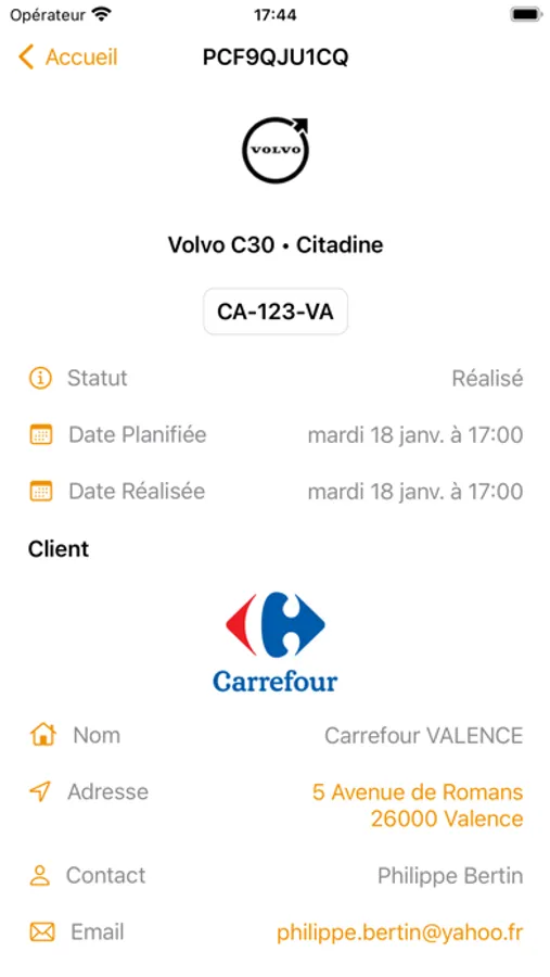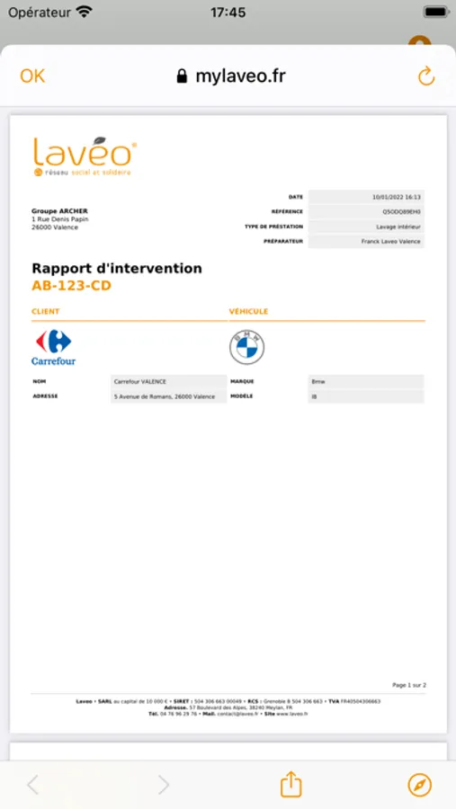 Une fois l'intervention terminée, vous pourrez accèder au rapport d'intervetion directement depuis MyLaveo