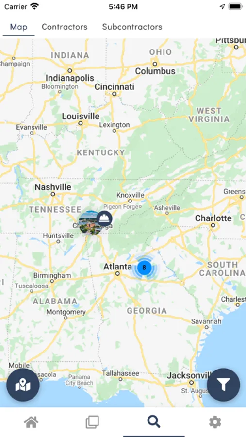 Users can request a COI through the 1-click COI request tool and search for subcontractors by list or the detailed map in the app.