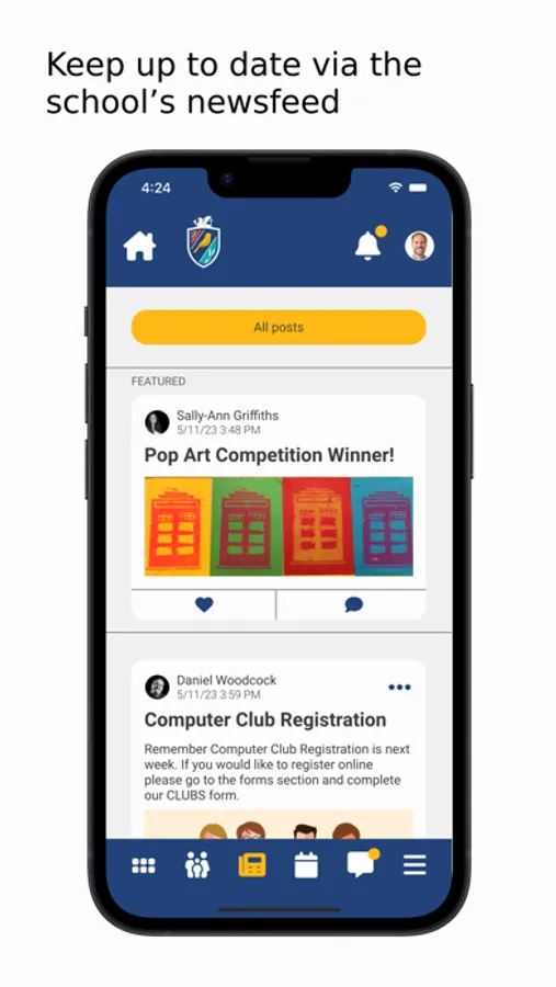 - View the school calendar and noticeboard, with information relevant to you and your child.