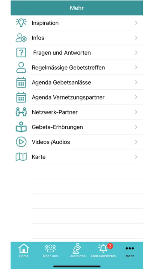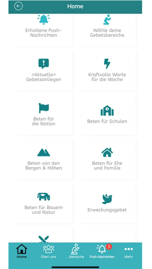 • mit Gebetsaufrufen und Info’s in verschiedenen auswählbaren Bereichen